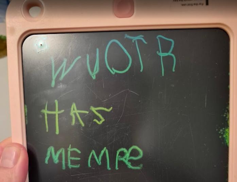 I went to a parent-teacher interview at Mira’s school. We talked about how Mira’s progressing in reading and writing. I’m grateful that the schools been teaching her so much about reading and writing. Recently, Mira came down from her bunk with “WUOTR HAS MEMRE” written on her tablet. Our big treat was to go to the book fair after and pick up a book.